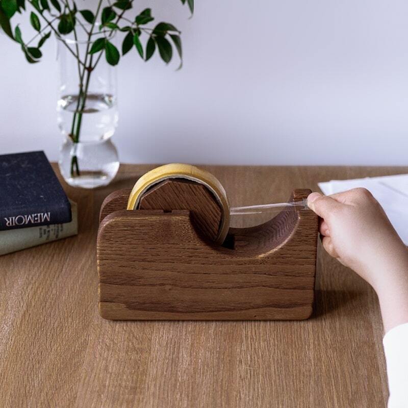 無垢材で作られた、ドシッと安定感のある卓上で使えるテープカッターです。