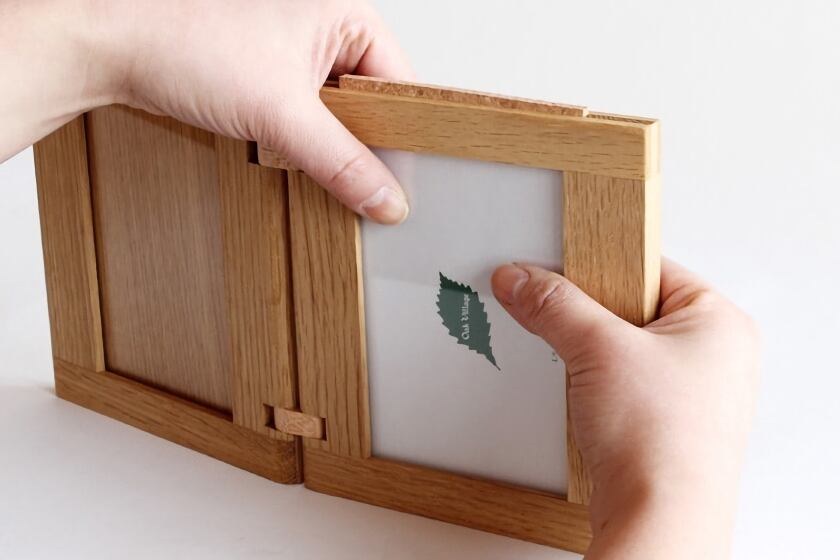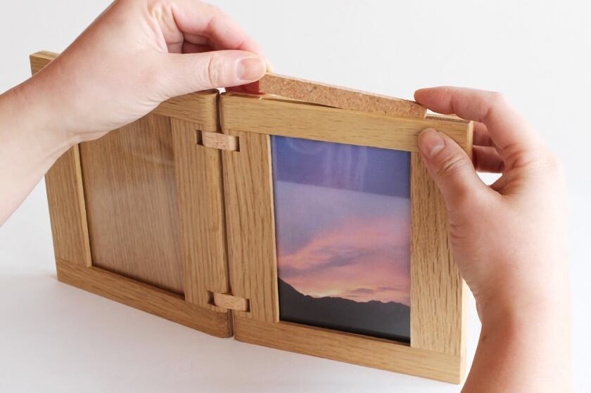 一見すると普通の写真立てですが、実は金属を一切使わず無垢の木だけで作られています。