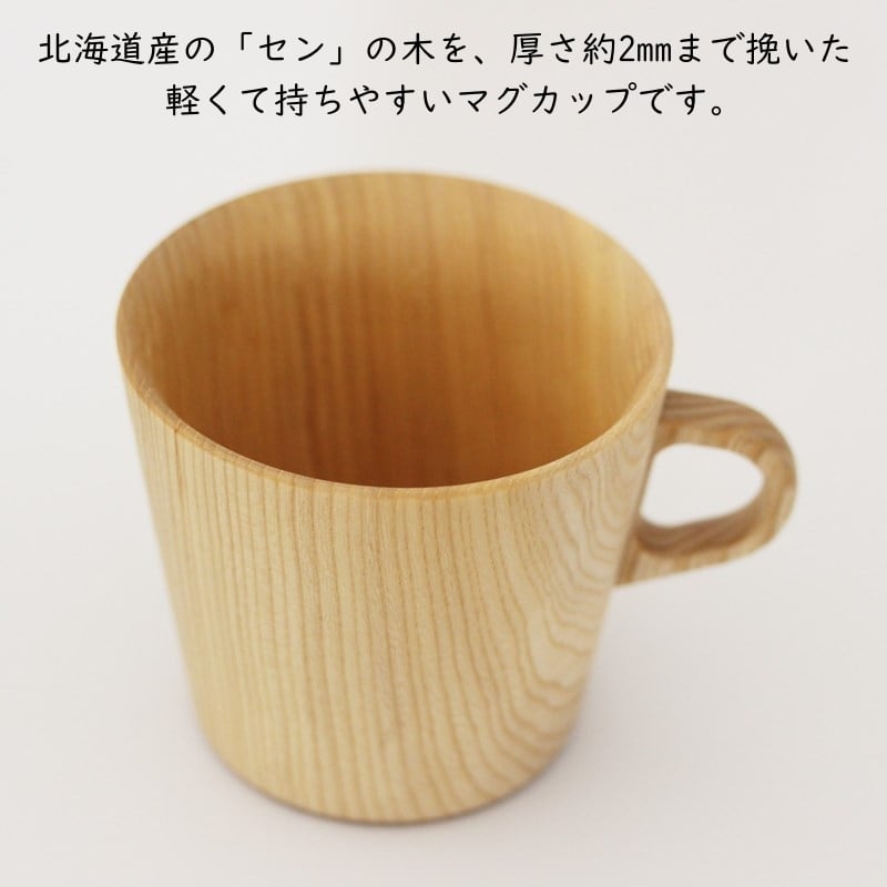 北海道産のセンの木をロクロでひいてつくったマグカップの【Sサイズ】です。