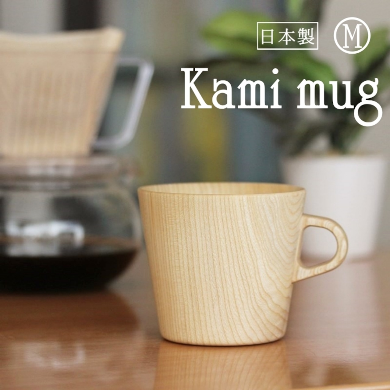 木のコップ Kamiマグカップ Mサイズ 木製 国産材 日本製 軽い 木目 おしゃれ かわいい ギフト プレゼント カフェ コーヒー 子供 大人