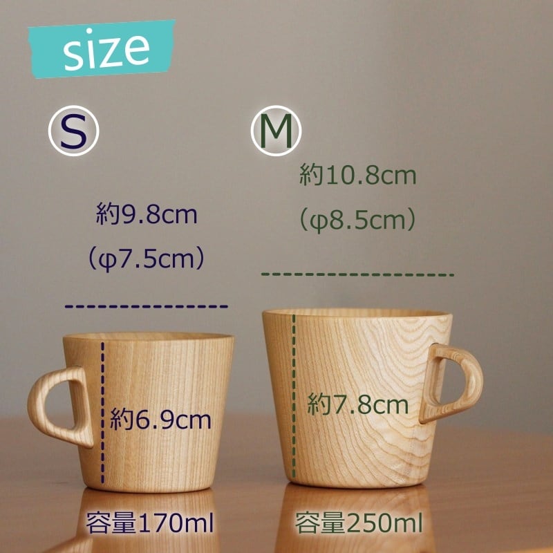 北海道産のセンの木をロクロでひいてつくったマグカップの【Mサイズ】です。