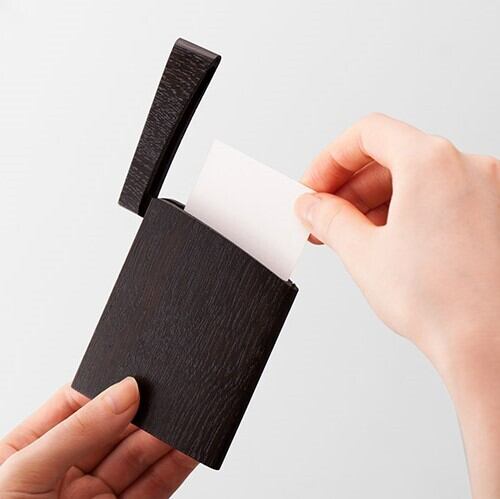 フタは回転軸のついたマグネット式で開閉しやすく、閉めたときに「パチン」と心地良い音がします。開閉がしっかりしているため実用性が高く、名刺が飛び出たりする心配がありません。